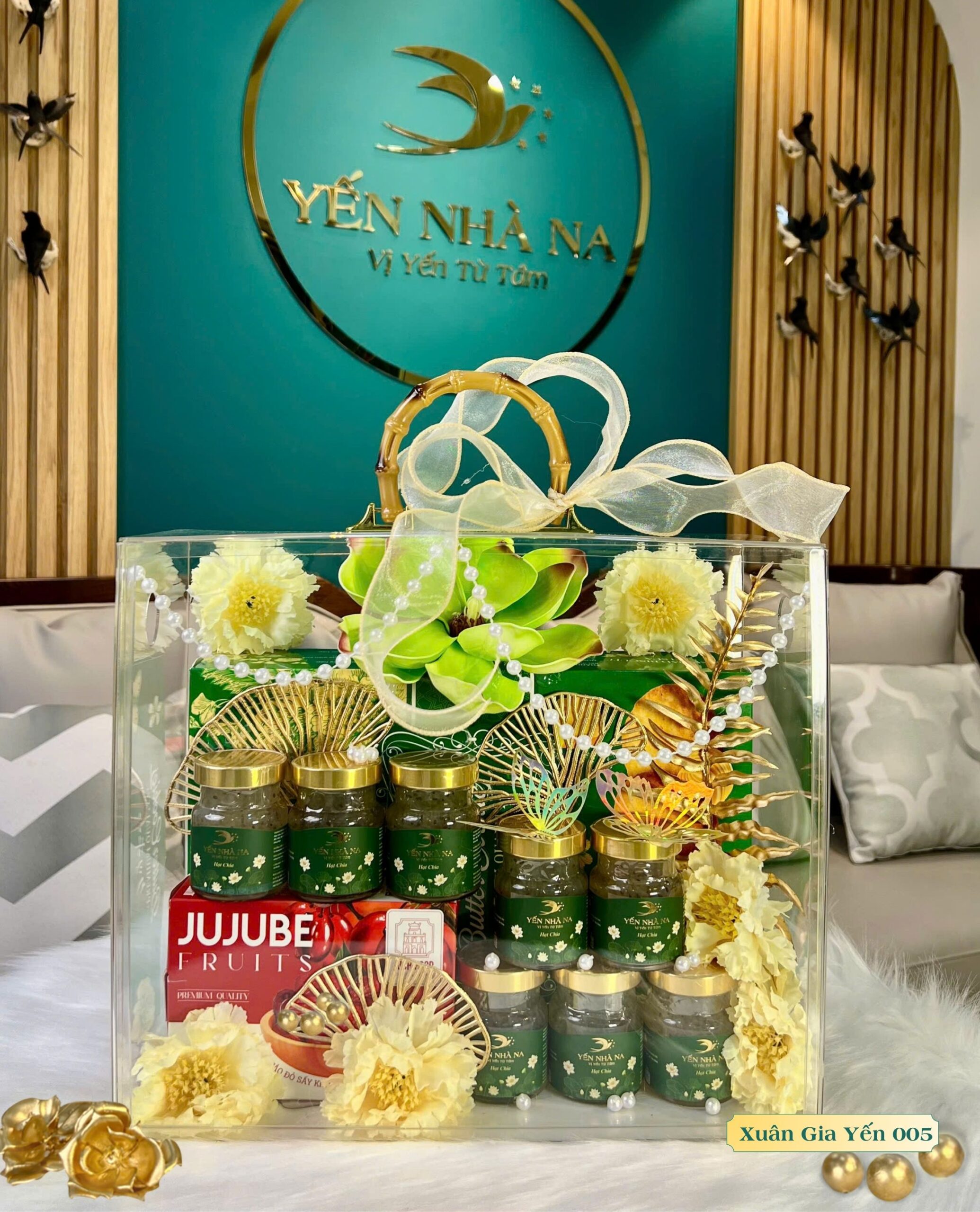 1. Yến chưng sẵn Hạt Chia 08 hủ 2. Hộp táo đỏ 3. Hộp bánh quy